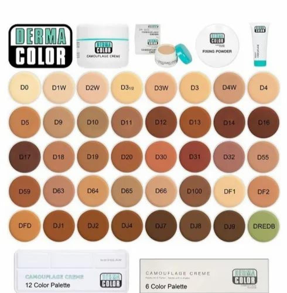 ديرماكالور كريم التمويه في حجم قياسي عملي. ديرماكالور كريم التمويه هو مكياج عالي الجودة يهدف إلى تصحيح وتغطية تشوهات الجلد، وتغيير الألوان والوشم. ديرماكالور كريم التمويه مناسب خاصة للوجه والرقبة. مع الاستخدام السليم لتشوهات الجلد ديرماكالور كريم التمويه نظام التمويه يمكن تصحيحها بسهولة. يتم اضافة بودرة ديرماكالور المثبتة و رذاذ من ديرماكالور ليصبح مضاد للمياه ويحمي البشرة من الأشعة فوق البنفسجية الضارة. ديرماكالوركريم التمويه يمكن أن يستمر حتى في ظل الظروف القاسية مثل السباحة والحرارة والاجهاد البدني. ديرماكالور كريم التمويه متاح في مجموعة واسعة من الظلال المتمازجة ليعطي الماكياج مظهر طبيعي عند تطبيقه بشكل صحيح