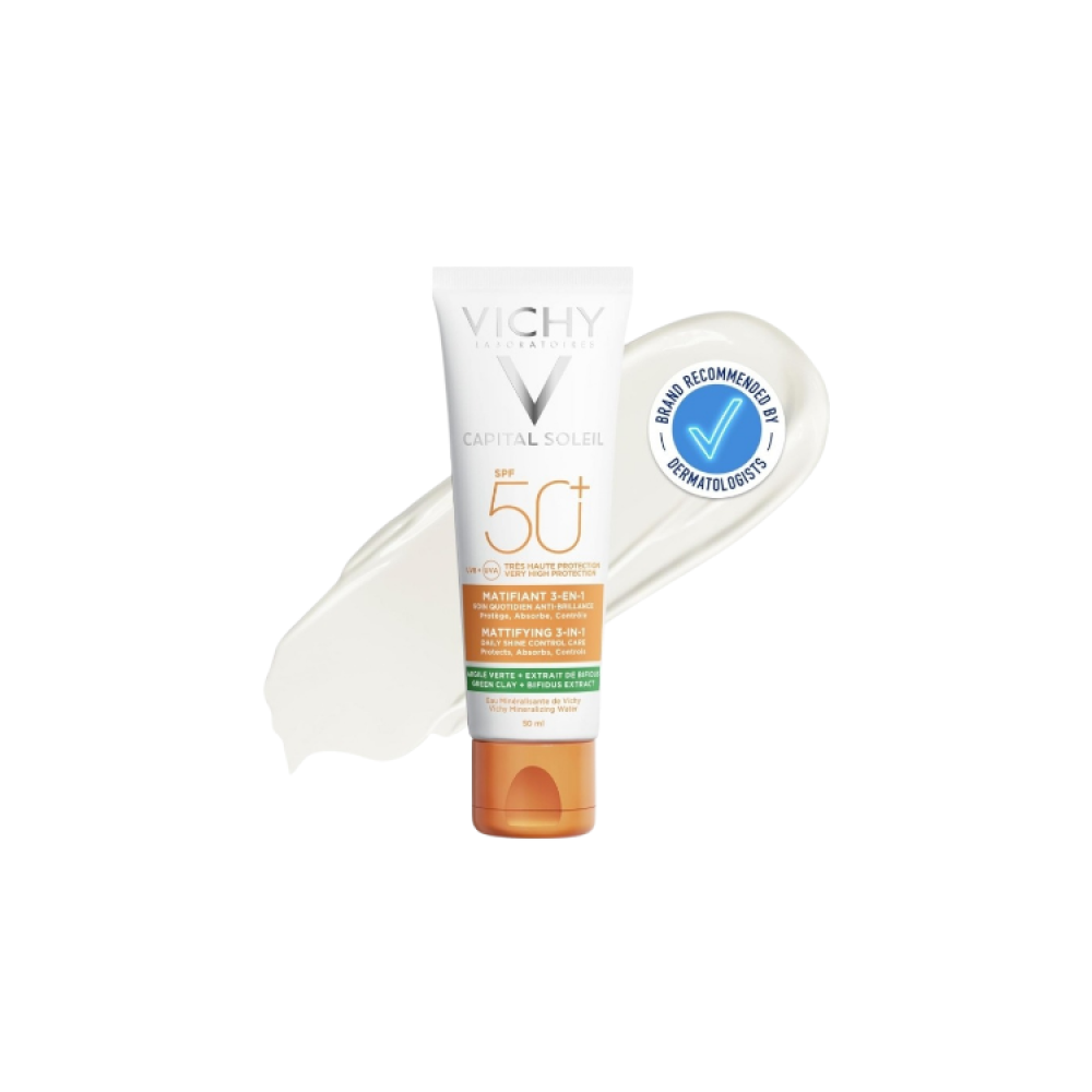 يتميز بعامل حماية من الشمس SPF 50+ الذي يوفر حماية فعالة ضد الأشعة فوق البنفسجية الضارة (UVA وUVB).