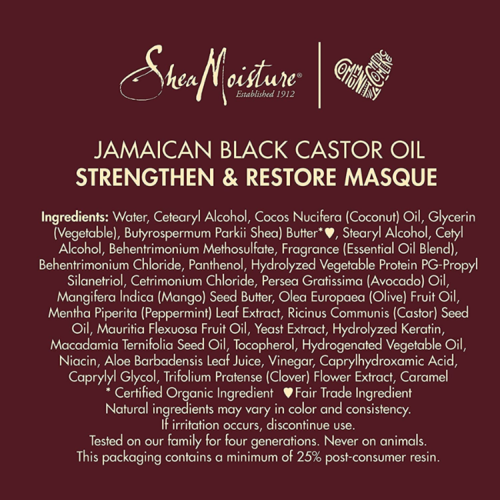 هذا القناع المرطب بعمق يعيد القوة والمرونة للشعر التالف والهائش والمعالج كيميائيًا. مثالي للأشخاص الذين يصبغون شعرهم أو يفردونه أو يتركونه مرتاحًا أويصففونه بالحرارة بانتظام، بالإضافة إلى تصفيفات الشعر الطبيعية المتعرجة أو المجعدة أو المتموجة. يساعد هذا القناع المصنوع من زيت الخروع الأسود الجمايكي وزبدة الكاكاو المعتمد من منظمة التجارة العادلة، على ترك الشعر ناعمًا، ولامعًا، وقابل للتصفيف.