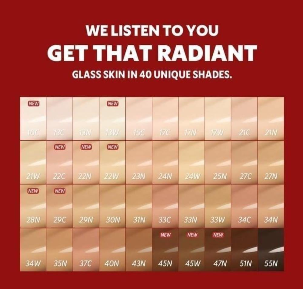 أساس مقاوم للتلطخ يوفر تغطية قوية لإخفاء عيوب البشرة والاحمرار للحصول على لمسة نهائية ناعمة وحريرية ومشرقة. غني بمستخلصات الكركديه والبروبوليس وزنابق الماء البيضاء للحفاظ على ترطيب البشرة وتغذيتها. مزود بمعامل حماية SPF 40 PA++ للحماية من الأشعة فوق البنفسجية الضارة. الاستخدام: كريم أساس طريقة الاستخدام: استخدمي فرشاة أساس وطبقي كريم الأساس ابتداءً من مركز الوجه وامزجيه للخارج. امزجي بلطف بحركة دائرية"