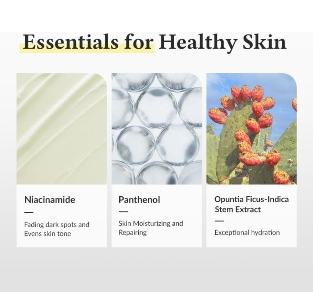 - يخفف من حب الشباب والالتهابات: يحتوي على مستخلص سنتيلا اياتيكا، وهو مكون شائع الاستخدام في علاج الأمراض الجلدية، ويحمي الخلية من التحفيز الالتهابي ويساعد في تصبغ البشرة وتحسين مخاوف حب الشباب.