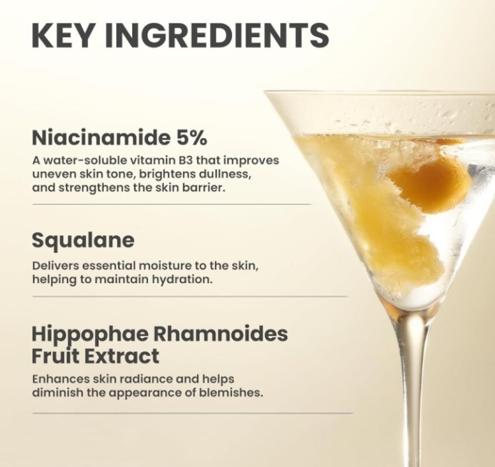 يحتوي على 5% من النياسيناميد ومستخلص البابايا لعناصر تفتيح البشرة.