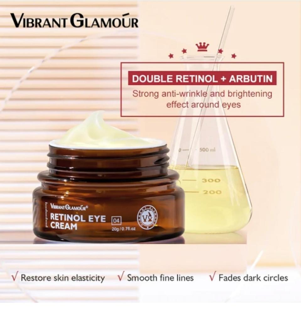Vibrant Glamour Retinol Eye Cream, Remove Dark Circles & Fine Lines, Anti-Wrinkle Bags & Skin Brightening, 20g