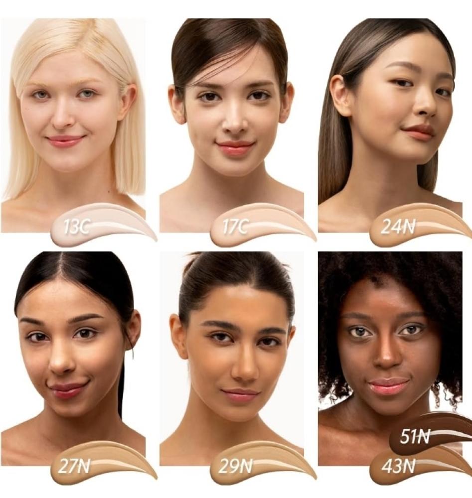 A smudge-proof foundation that provides strong coverage to hide skin imperfections and redness for a smooth, silky, radiant finish. Enriched with hibiscus, propolis, and white water lily extracts to keep skin hydrated and nourished. Equipped with SPF 40 PA++ to protect against harmful UV rays. Usage: Foundation How to use: Use a foundation brush and apply the foundation starting from the center of the face and blending outwards. Gently blend in a circular motion"